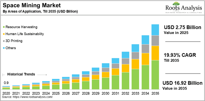 Space mining market projected to hit $16.92B by 2035 at 19.93% CAGR. Explore opportunities in extraterrestrial mining